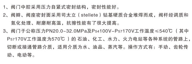 低溫截止閥、高溫高壓電站截止閥、氧氣管路截止閥、石油液化氣截止閥、加氫裂化裝置用截止閥、保溫夾套截止閥等。