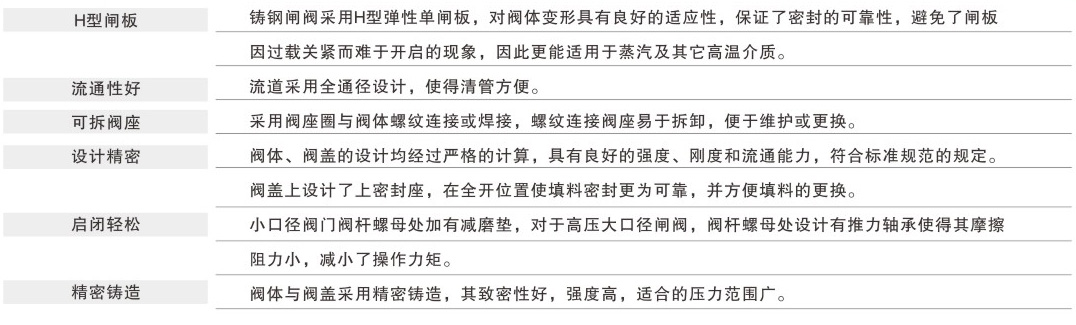 本該系列閘閥分為鑄鋼閘閥和鍛鋼閘閥,設(shè)計(jì)和制造參考了 ANSI B16.34、API6D標(biāo)準(zhǔn)。閘板分為剛性閘板和彈性閘板兩種,可適用于不同的壓力級(jí)。鑄鋼閘閥采用上密封結(jié)構(gòu),鍛鋼采用閥蓋堆焊上密封的結(jié)構(gòu)。使其維修方便,密封性能好。廣泛應(yīng)用于油田、化工、水處理等行業(yè)。